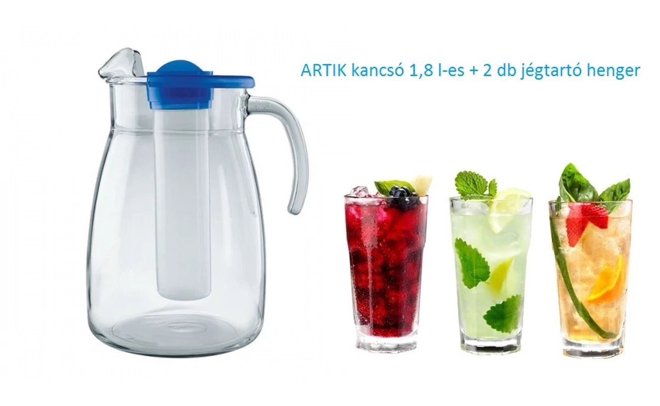 Tartalma: 1 db üveg kancsó, 1 db fedő, 2 db jégtartó henger