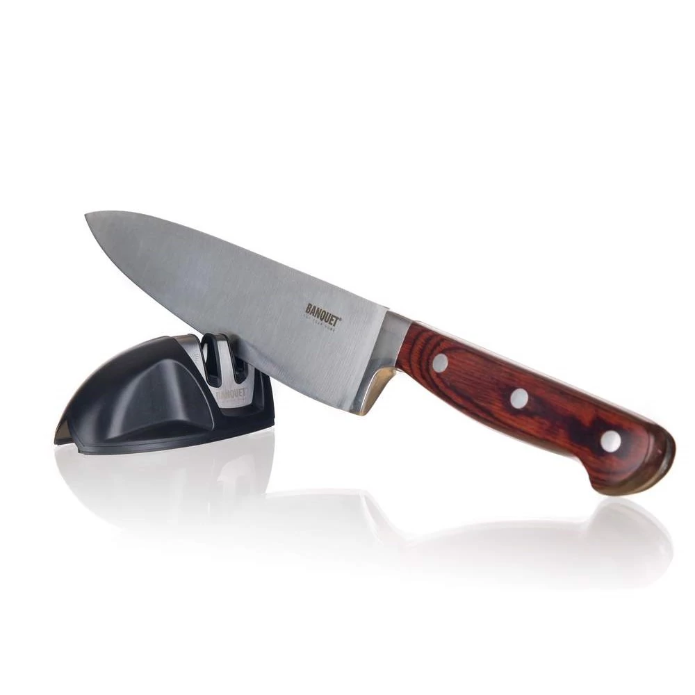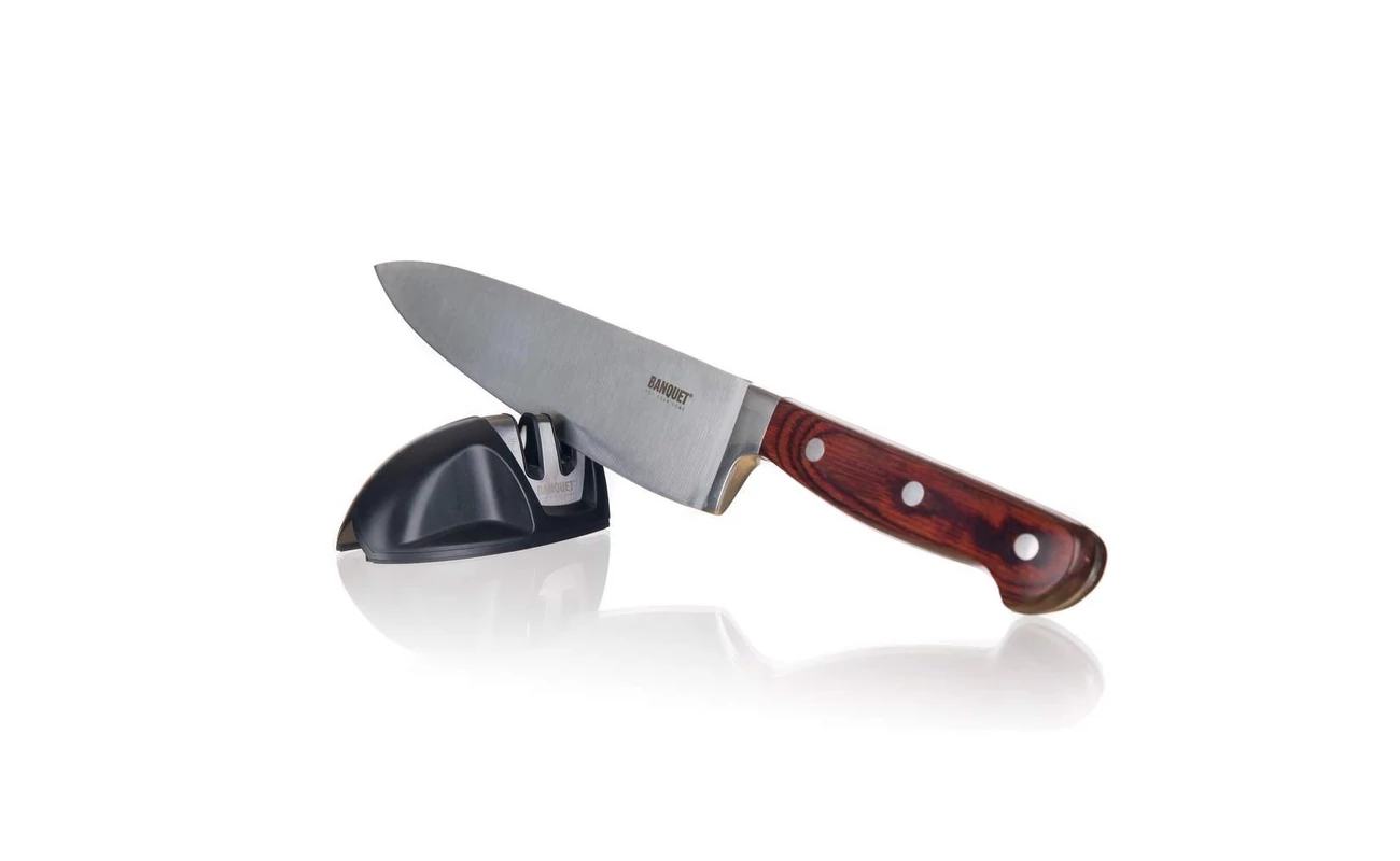 A Banquet ALIVIO 2 fokozatú késélező ABS műanyagból készült, soft kialakítású, és csúszásgátló alapzattal ellátott.