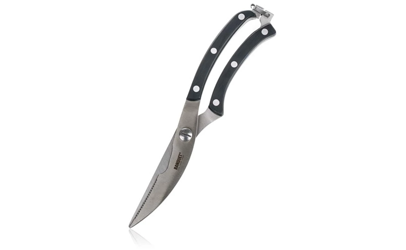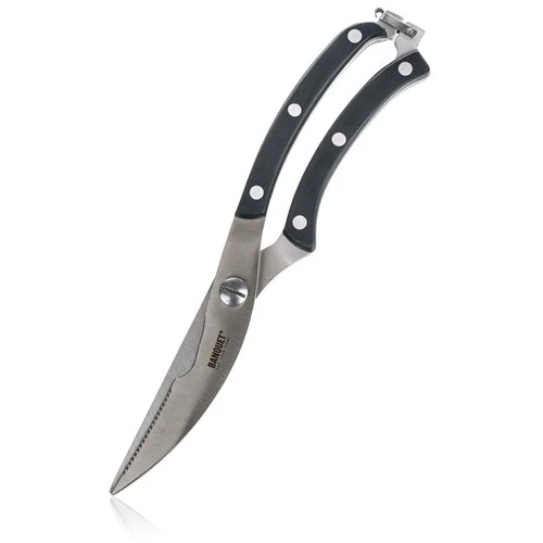 A Banquet Baromfivágó olló alkalmas szárnyasok bontására, vadhúsok darabolására. Az íves pengekiképzés csont vágására is alkalmassá teszi. Erős, masszív rozsdamentes acélból készült. Prémium minőségű cseh termék.