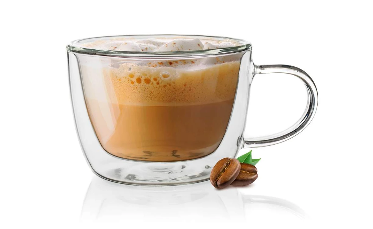 A Banquet duplafalú cappuccinos bögre kézzel fújt, hőálló bórszilikát üvegből készült.