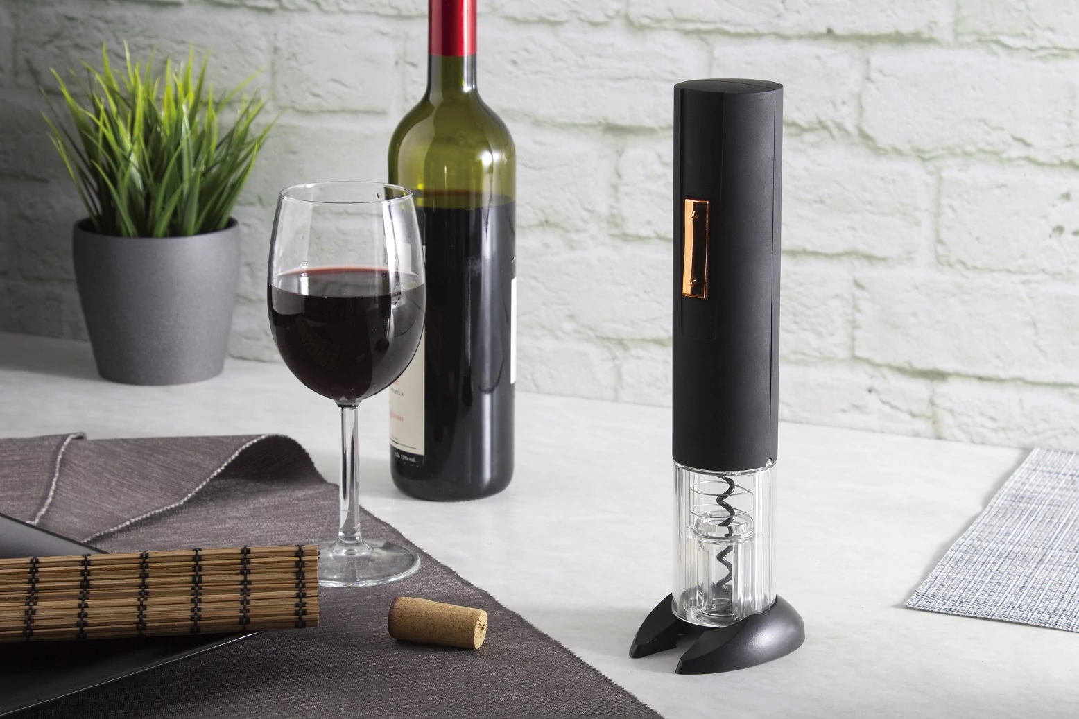 az elektromos dugóhúzó 8 másodperc alatt automatikusan kibontja a bort.
