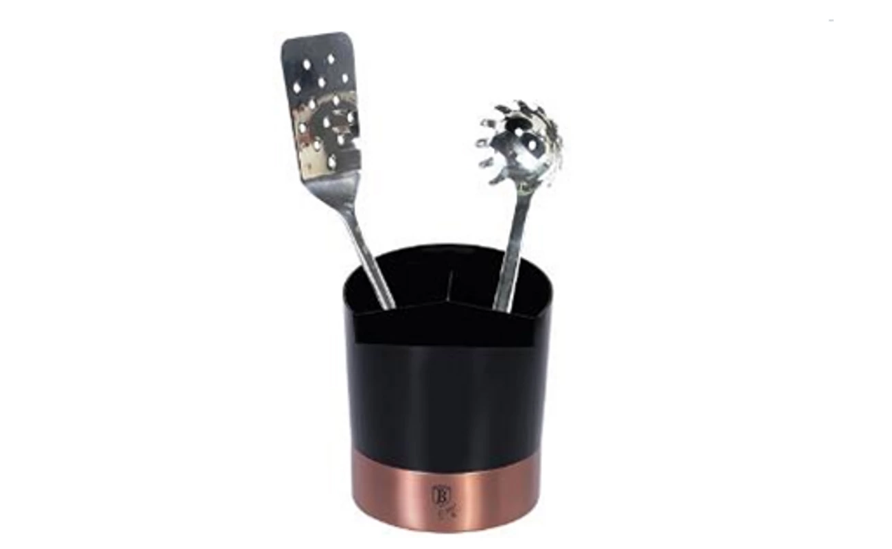 A Black Rose Collection konyhai eszköztartó tökéletes választás, ha modern és stílusos megoldásra van szükséged a konyhádban. A 14,5 * 17 cm-es méretének köszönhetően ideálisan elfér a pulton, miközben bőséges helyet biztosít a mindennapi eszközeid tárolásához.