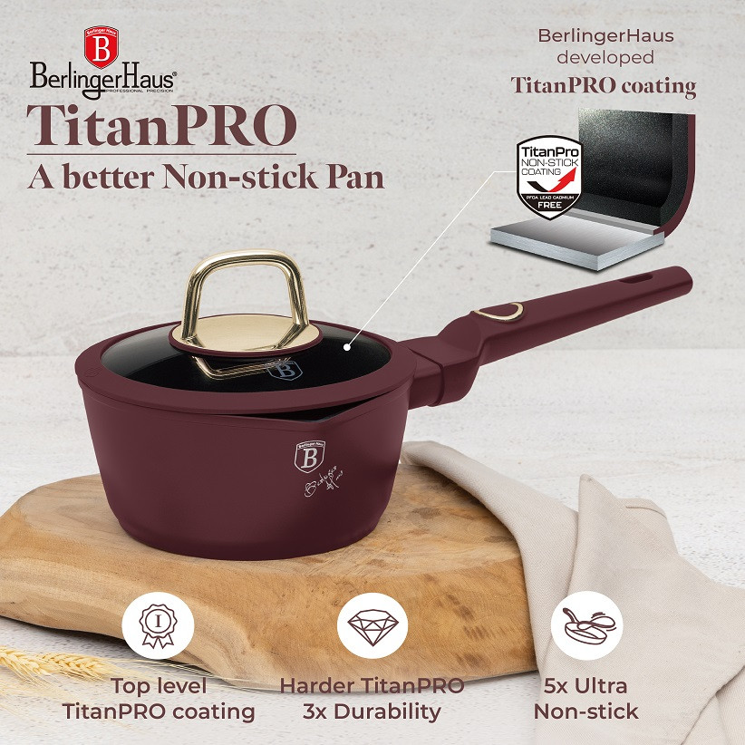 A Berlinger Haus által gyártott Leonardo lábas kiemelkedő minőségű, extra ellenálló TitanPro bevonattal rendelkezik, amely rendkívül kopásálló és kiváló tapadásmentességet biztosít. Az edény gyorsan és egyenletesen osztja el a hőt, amit hosszú ideig képes megtartani. Az erős oldalfalak nem deformálódnak, és az indukciós aljnak köszönhetően minden típusú tűzhelyen használható. Prémium minőségű termék, amely a legmagasabb igényeket is kielégíti.