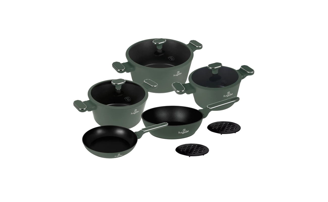 Berlinger Haus Matte Green 10 részes edénykészlet extra ellenálló, tapadásmentes TitanPro bevonattal.