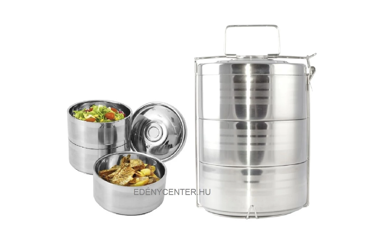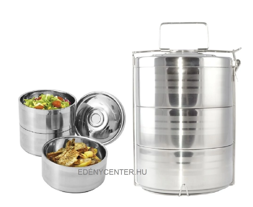 Jól záródó, masszív, kiváló minőségű, rozsdamentes acélból készült 3 részes ételhordó.