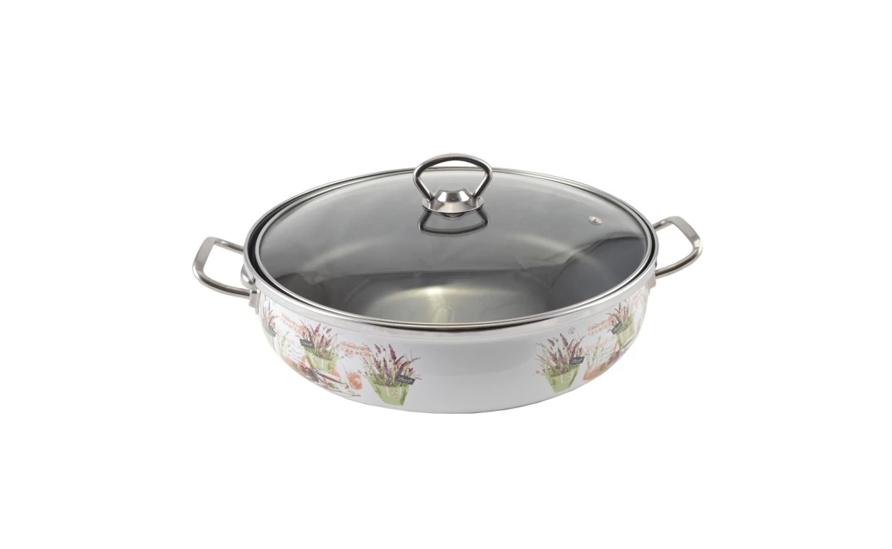 Levendula mintás alacsony lábas fedővel 2 l-es