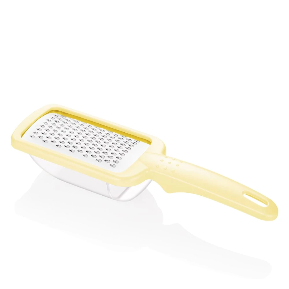 Ezzel a tartályos reszelővel gyerekjáték a reszelés! A fogantyúja megkönnyíti a használatát, és stabil tartást biztosít. Alkalmas sajt, gyömbér, fokhagyma, csokoládé reszelésére, és a tartály tökéletesen összegyűjti a lereszelt élelmiszereket.
